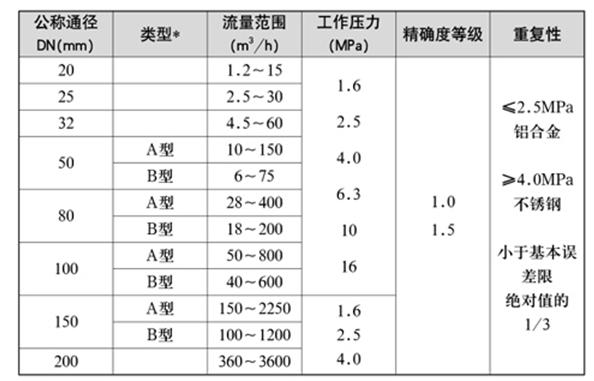 1、流量計規(gui)格、基本參數(shu)和性能指标(biao)(見表1)