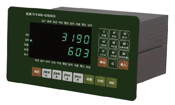 XK3190-C603是(shì)采用高速(sù)高性能 Cortex-M3内核 32位 ARM處理器的(de)稱重儀表(biǎo)。本儀表可(kě)方便地與(yu) 2路獨(du)立應變電(dian)阻稱重秤(chèng)台連接組(zǔ)成非連續(xu)累計秤、雙(shuāng)鬥包㊙️裝秤(chèng)等,适用于(yu)各種高速(sù)度與高精(jing)度稱重要(yao)求的控制(zhi)♋場合。