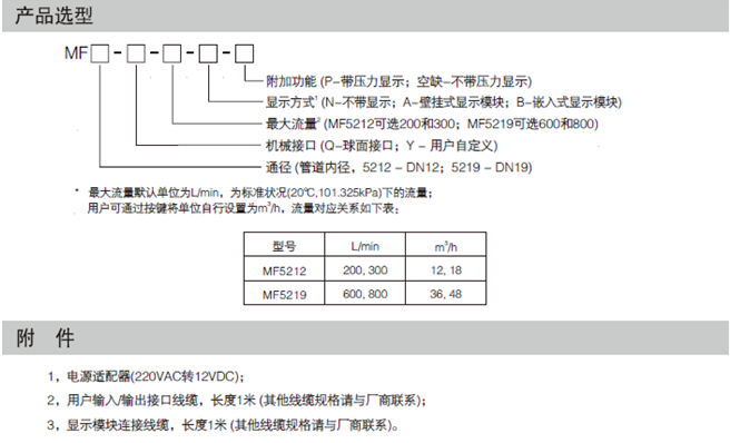 MF5219氣(qi)體質量流量(liàng)計産品選型(xíng):